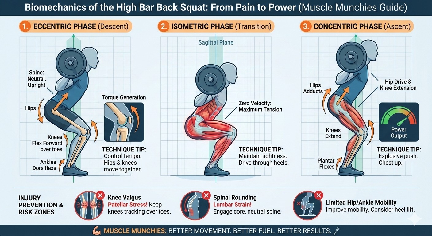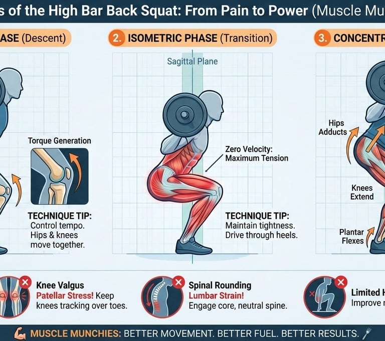 Stop letting lower back pain stall your progress. Dive into the biomechanics of the high bar back squat with Muscle Munchies. We break down the phases of movement, torque generation, and injury prevention to help you move better, train harder, and fuel your gains with confidence.